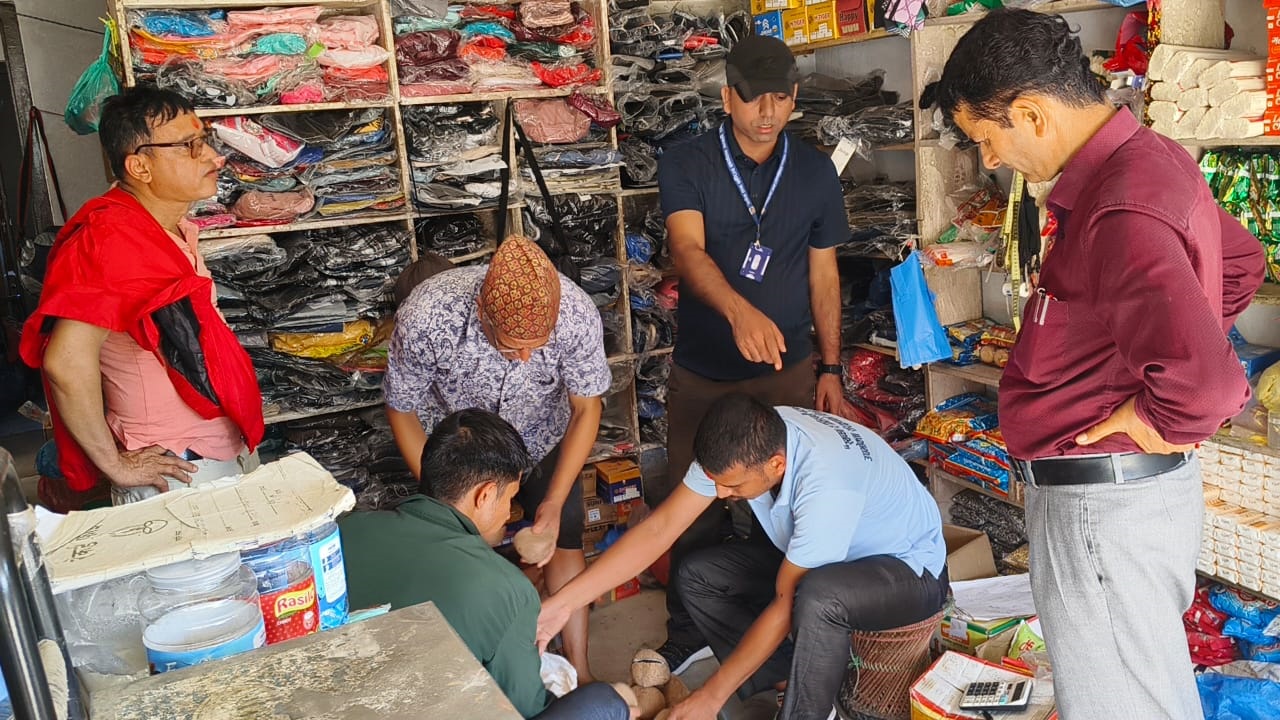 रामेछाप । जिल्लाको खाँडादेवी गाउँपालिकामा रहेको पसलहरूमा जिल्ला अनुगमन समितिले तिहार लक्षित अनुगमन गरेको छ । शनिवार गरिएको अनुगमनमा बजारमा बिक्रीका लागि राखिएका भाई मसला, चिउरा, मैदा, नरिवलजस्ता सामग्रीहरूको गुणस्तर अनुगमन गरिएको थियो। टोलीले कुहिएको नरिवल, म्याद गुज्रेको मैदा र गुणस्तरीय मापदण्ड पूरा नगरेका चिउरा जफत गरी नष्ट गरेको जनाएको छ।